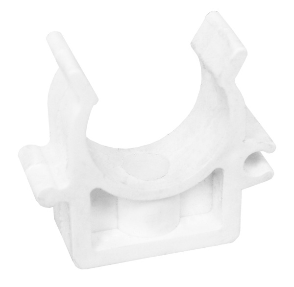 Благодаря специальной форме хомута пластиковая труба защелкивается к хомуту, после его установки на стену, и надежно удерживается в нем.